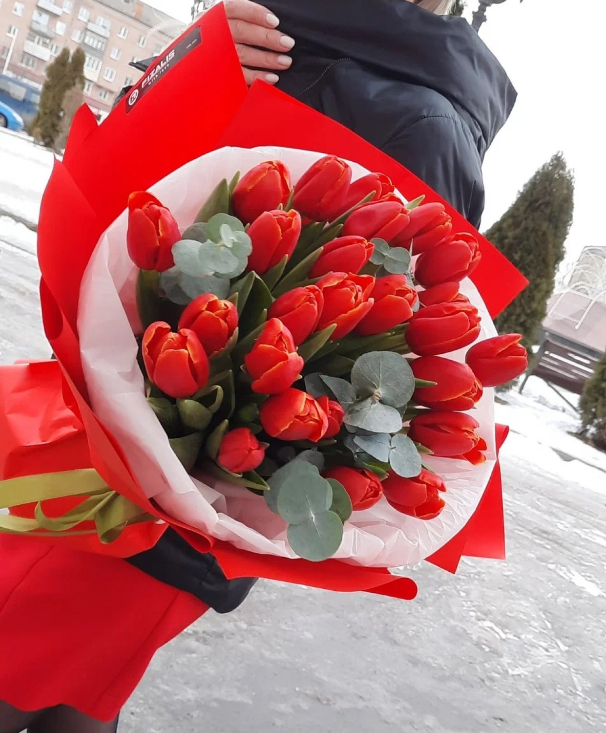 | Описание 27 тюльпанов, эвкалипт, упаковка. Внимание: цена цветов может меняться в зависимости от сезона! |