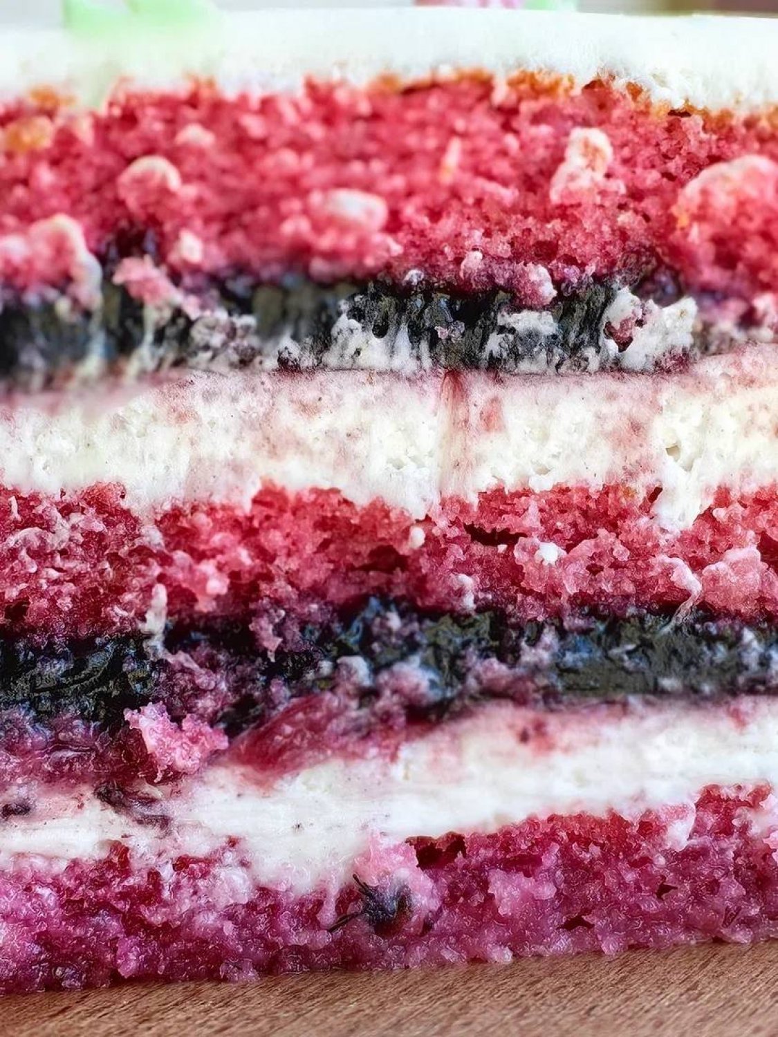 | Описание Бисквит со смородиновым пюре, сливочный крем «Маскарпоне», начинка черничная «Лесная ягода». Масса: 800гр. |